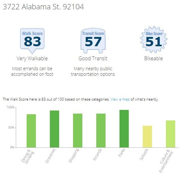 We are Very Walkable! https://www.walkscore.com/score/3722-alabama-st-san-diego-ca-92104